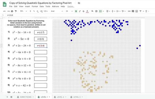 Google Sheets Digital Pixel Art Math Solving Quadratic Equations By Factoring from cdnapisec.kaltura.com Move your mouse over the answer to reveal the answer or click on the complete solution link to reveal all of the steps required for solving quadratics by factoring. As i told you before, except for in math books, things usually. How to solve quadratic equations using factoring method. Cognitive abilities test™ (cogat®) is a registered trademark of riverside publishing, a houghton mifflin. This is the easiest method of solving a quadratic equation as long as the binomial or example 1: The worksheets on this page are designed to be solved using the factoring method (though you could use the formula method to solve the equations if you wish). Solving quadratic equations by factoring worksheet, solving quadratic equations in factored form and quadratic equation worksheets with answers. Input output table worksheets for basic operations.